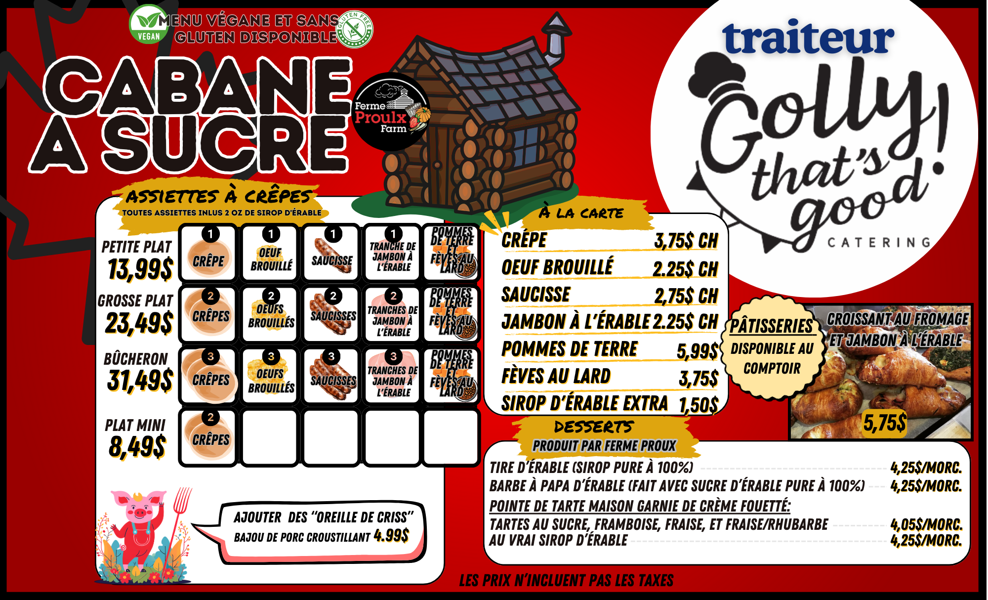 | Au vrai sirop d’érable: | 4.25$ +tvh |