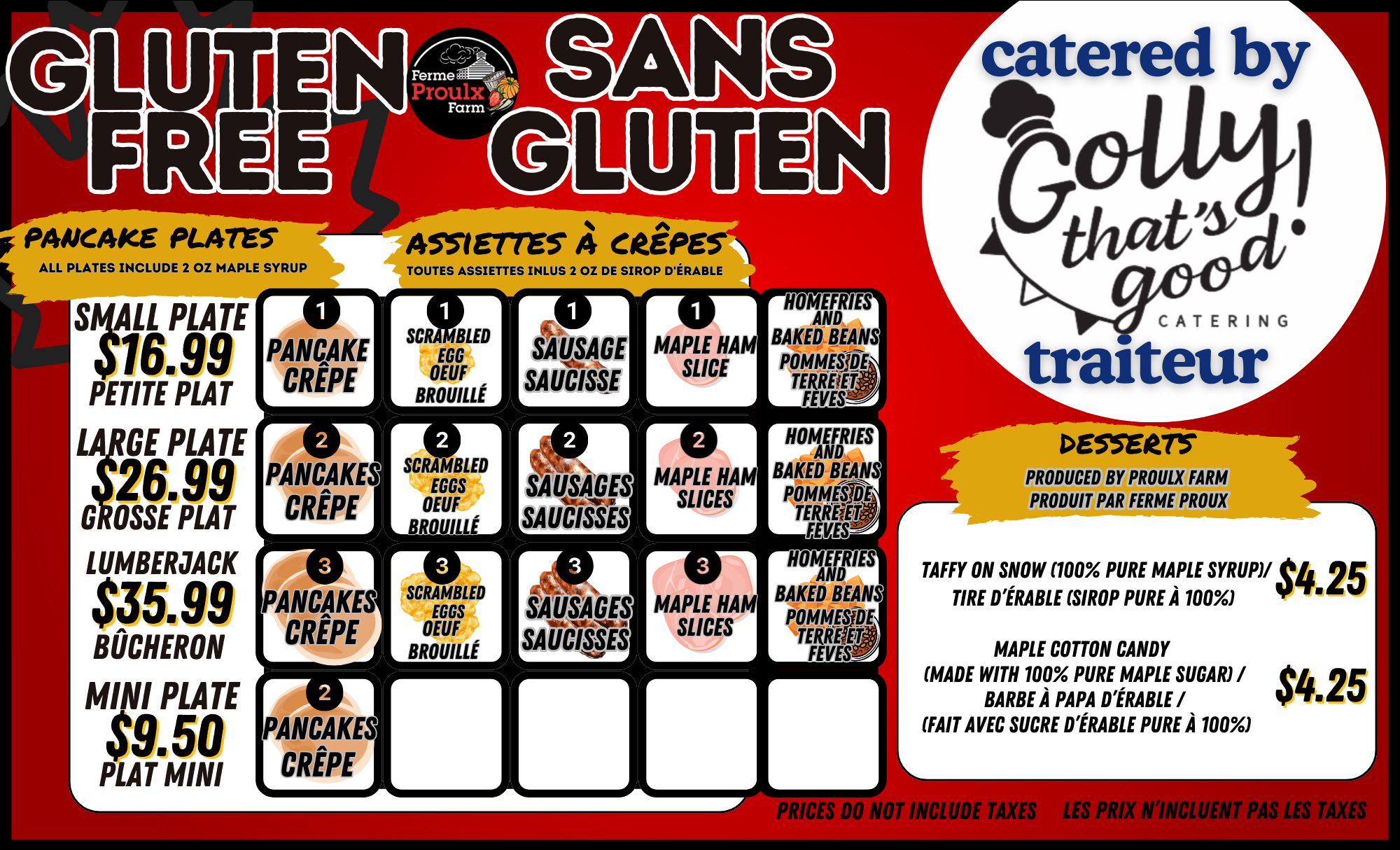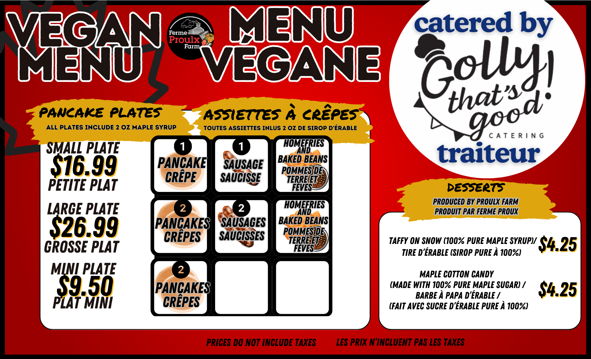 | Taffy on snow (100% pure maple syrup): | 4.25$/ea |